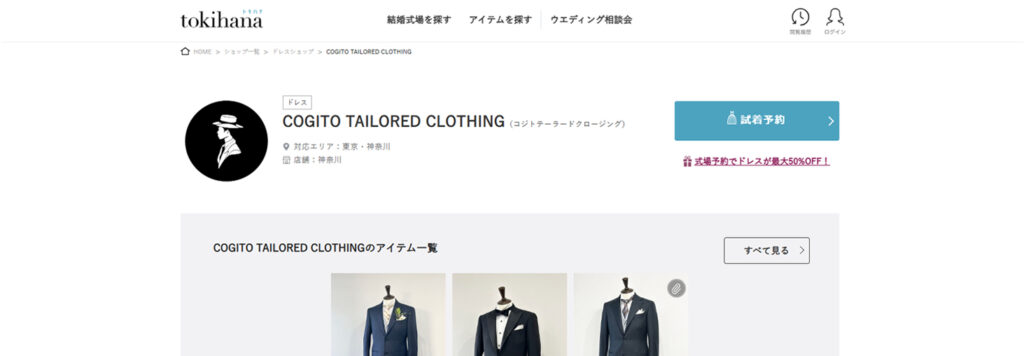 結婚式場DXサービス『トキハナ』とコジト テーラード クロージングはパートナーシップを結びました。トキハナで結婚式場を決められた新郎様に当店のウェディングスーツをご提案いたします。
